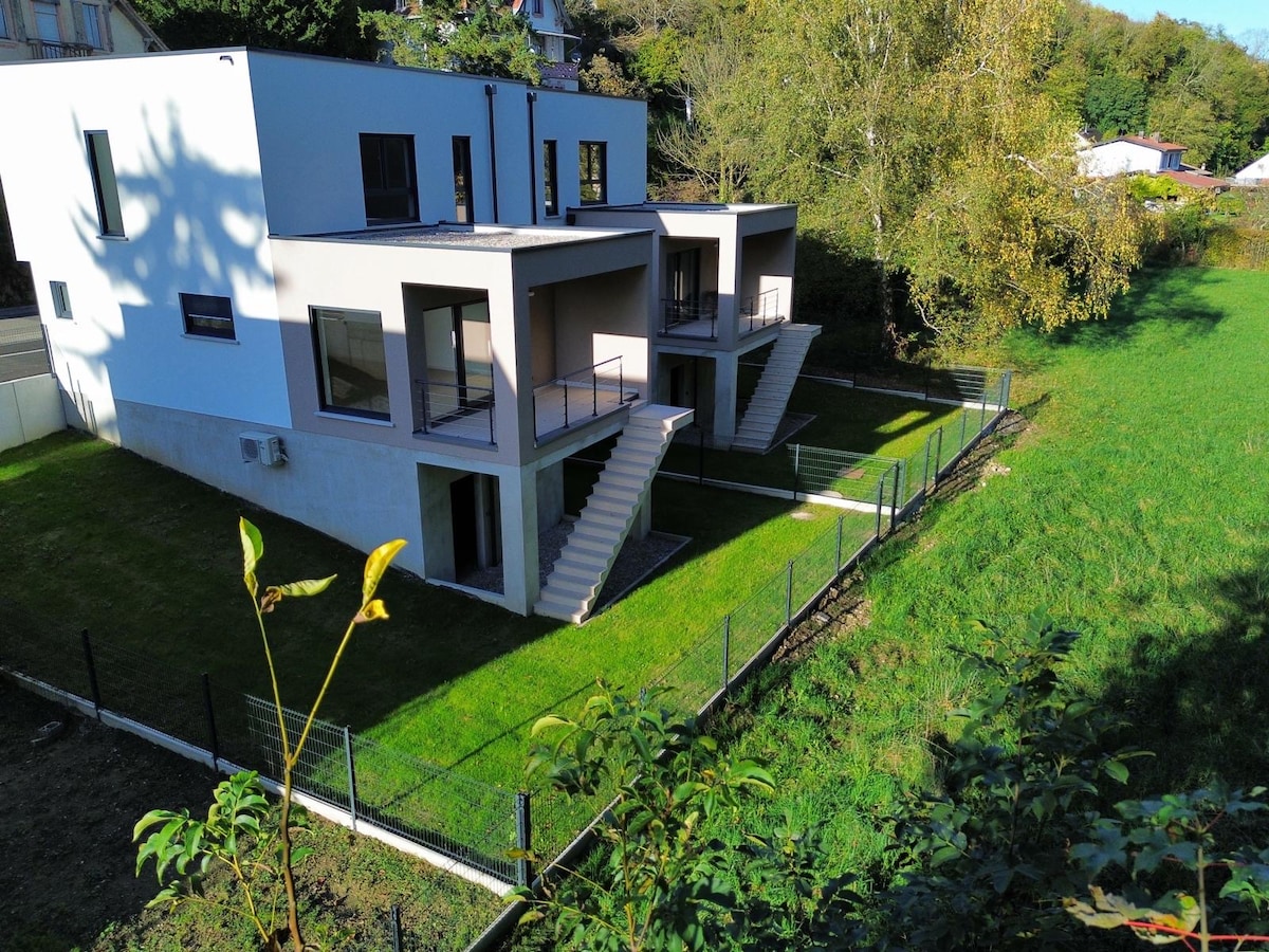 Nuevo apartamento ático de alto standing con una gran terraza, idealmente situado cerca de todos los servicios (Aeropuerto, Estación de tren, tranvía, restaurante, supermercado, bar) y a 2 minutos de la frontera con Suiza. Parada de tranvía (Línea 3 - Basilea) situada enfrente del apartamento. Situado en la planta superior sin ascensor, consta de: 1 cama doble, un sofá cama, 1 baño con ducha italiana y WC, una cocina totalmente equipada abierta a la sala de estar. También tiene un lugar para estacionar.