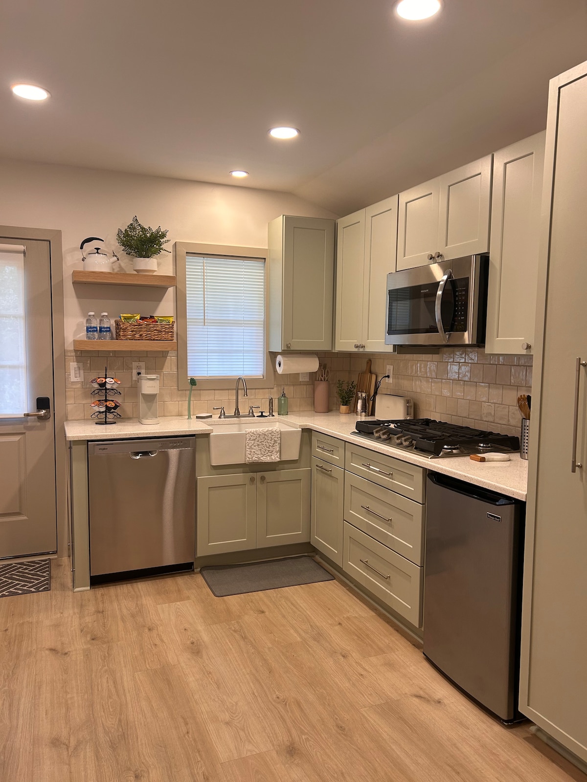 Relájate con toda tu familia o grupo en el tranquilo Green Haven. ¡Te espera una mezcla perfecta de privacidad y comodidad en la zona común para todo tu grupo! Hemos tomado medidas especiales para asegurarnos de que tengas todo lo necesario para disfrutar de una estancia cómoda y relajante. Tres estaciones de trabajo dedicadas junto con estaciones de carga USB ubicadas en las lámparas y receptáculos en cada habitación para tu comodidad. Disfruta de una cocina completa con todos los pequeños electrodomésticos que necesitas y un baño totalmente equipado.