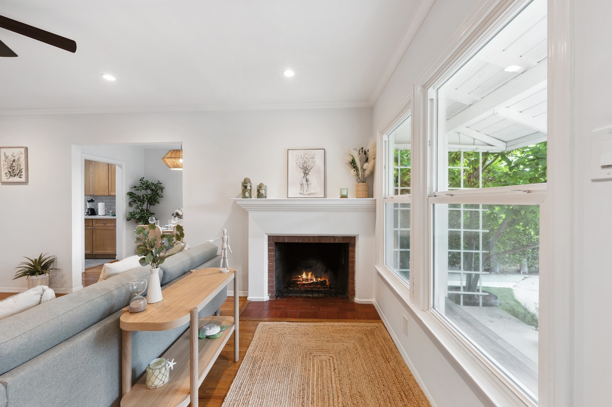 CASA principal doble de 1260 pies cuadrados LIMPIA y LUMINOSA solo para ti. Aire acondicionado, 2 camas tamaño queen, vestidores, suelos de madera, buenas configuraciones de entretenimiento de TV, lavadora/secadora, aparcamiento, cocina de chef remodelada, 2 cafeteras (goteo y prensa francesa), lavavajillas y comedor. Grandes JARDINES delanteros y traseros (compartidos*) con porche trasero, barbacoa de gas y pequeño pozo de fuego al aire libre. Wifi, TV por cable, reproductores Blu-Ray/acceso a Netflix, Hulu, etc. en todas las habitaciones. La sala de estar tiene CHIMENEA, sonido envolvente y sofá cama queen.