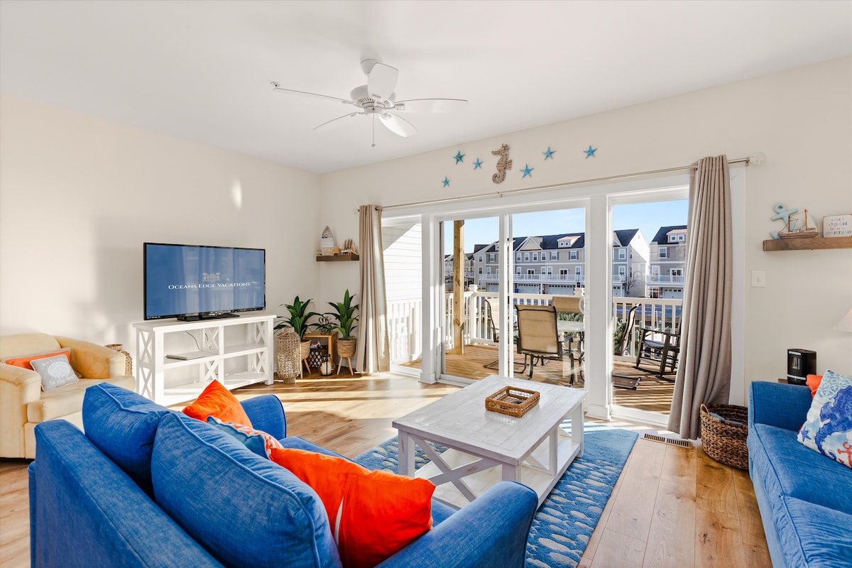 Te damos la bienvenida a Bayside Bliss, un elegante condominio en el último piso de 2 dormitorios y 2 dormitorios en el centro de OC. Relájate en la sala de estar extragrande, transmite tus programas y música favoritos a cualquiera de los televisores inteligentes o mira la puesta de sol en el porche. La cocina totalmente equipada, la lavadora y la secadora y dos baños completos harán que tu estancia se sienta como en casa. A poca distancia a pie de algunos de los mejores restaurantes de OC, la vida nocturna, el paseo marítimo y la playa. A pocos pasos del White Marlin Open y del Salón Aeronáutico de OC