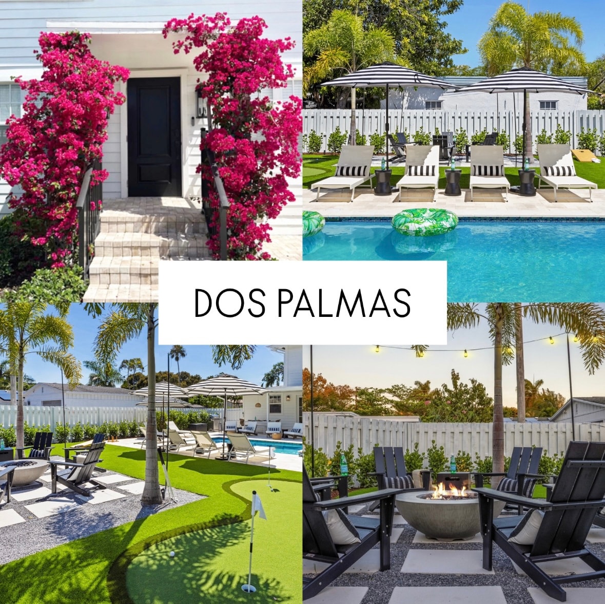 Dos Palmas es un alojamiento de lujo recientemente remodelado y diseñado para estancias cortas. LO MÁS DESTACABLE - Calefacción incluida piscina de agua salada + jacuzzi. - 3 hoyos de putting green - Zona para fogatas con asientos en Adirondak. - 6 tumbonas junto a la piscina con sombrillas. - Asientos de conversación junto a la piscina. - Área de comedor al aire libre. - Juegos de patio al aire libre. - Parrilla de gas de 4 quemadores de acero inoxidable. - Cocina de chefs gourmet. - Zona de bar con enfriador de vino incorporado + nevera para bebidas. - Starbucks Coffee + Tazo Tea Station - Juegos de mesa.