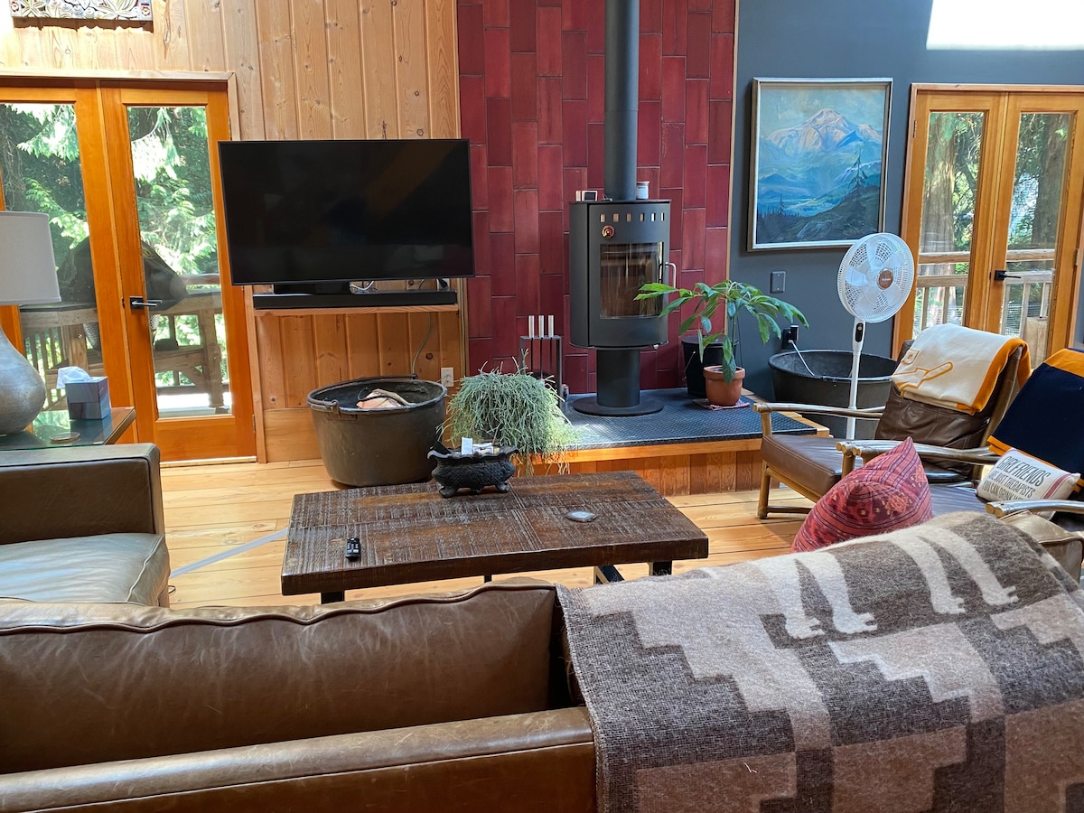 Mi hogar está realmente enclavado entre los árboles de hoja perenne. El espacio habitable está encaramado en el segundo y tercer piso con un porche, vigas expuestas y madera en todas partes, y enormes ventanas y tragaluces, dándote la sensación de estar en una casa del árbol (nuestro apodo para esta propiedad). Es escarpado y grandioso, inspirador y modesto. En el exterior, la casa está rodeada de Western Red Cedar, Doug Fir, helechos y Salal. Cultivo un huerto en el verano y crío algunos pollos, ¡todo tuyo para disfrutar!