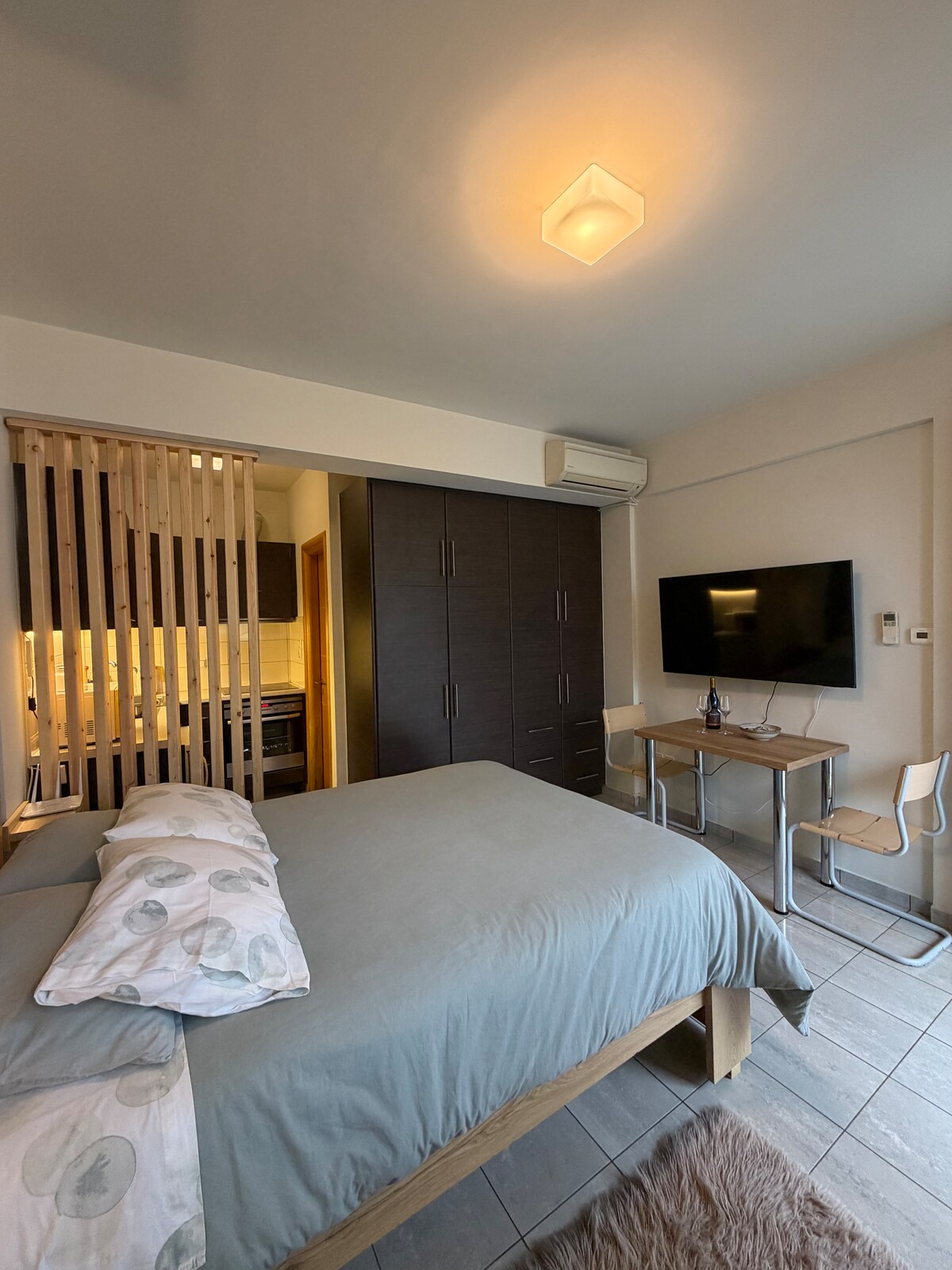 The house is an independent and autonomous residence in a huge garden. It consists of a bathroom and a living room with a double bed. The Barbecue area can be used as a cooking and dining kitchen, fully equipped with electric cooker, barbecue, and a traditional built oven. The house is in a quiet place and is only 800 meters away from the beach.There is a long sandy beach arround. The beach of Kouroutas and the center of Kouroutas is only 1 km away.