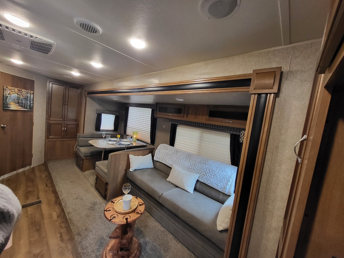 Disfruta de esta hermosa caravana en el corazón del valle de Shenandoah en Woodstock, VA, en una propiedad de tierras de cultivo. A menos de 5 minutos en coche de North Mountain Vineyard y a una hora en coche de Luray Caverns y de todo lo mejor que el senderismo, la pesca, la exploración y el kayak del valle de Shenandoah y las montañas Blue Ridge tienen que ofrecer. Disfruta de las comodidades de una pequeña ciudad. La entrada a Skyline Drive está a unos 20 minutos en coche. Trae tu propio gel de ducha y champús. Capacidad para 2-4 personas. Hay dos colchones inflables disponibles.
