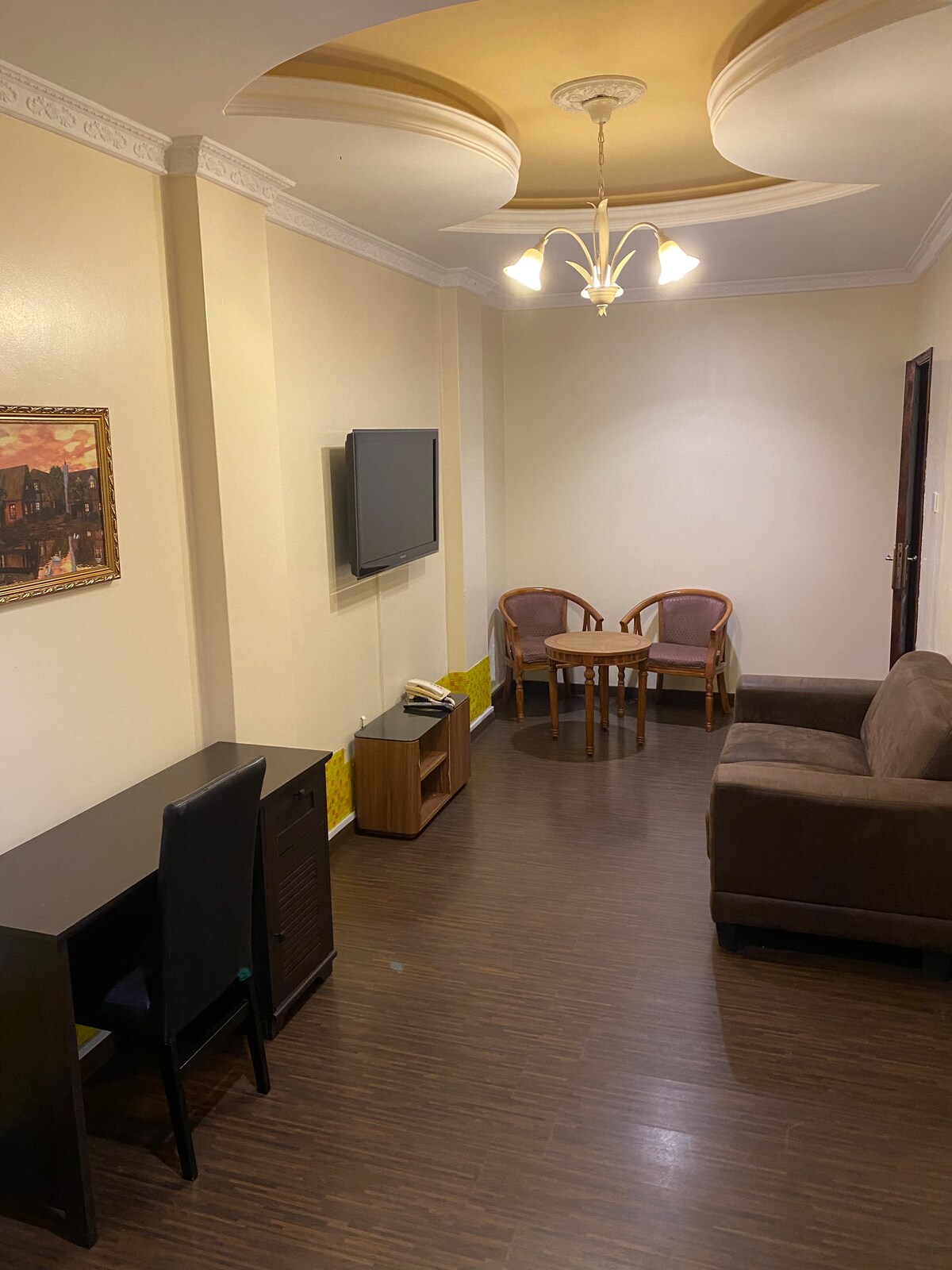 Situado en las zonas más seguras de Nairobi, en el corazón de Westlands: junto a Westgate Mall, The Oval y a poca distancia a pie de Sarit Centre. Este apartamento económico de un dormitorio en la planta baja está completamente amueblado con un salón, dormitorio, baño (con duchas eléctricas de agua caliente las 24 horas) y una cocina pequeña (con nevera, hervidor de agua caliente, microondas y placa caliente eléctrica). Obtén acceso gratuito a nuestro gimnasio totalmente equipado y cuenta con la comodidad de un mostrador de recepción del hotel las 24 horas. Wifi gratuito disponible