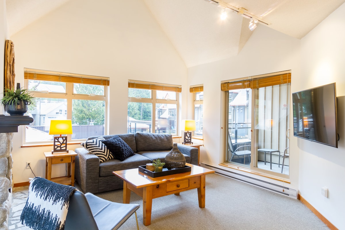 🌸 PRIMAVERA 🌊 Piscina al aire libre, bañera de hidromasaje y sauna: relájese después de esquiar o de hacer senderismo con vistas a la montaña. 🌿 Departamento renovado de 1 dormitorio: chimenea de gas, cocina completa y terraza para disfrutar de todo. 🚵 Acceso a senderos: A solo unos pasos de Creekside y de la red de senderos del valle. 🚗 Transporte y estacionamiento: Estacionamiento subterráneo gratuito y parada del servicio de transporte cercano. 🏔️ Ubicación inmejorable: teleférico, tiendas, restaurantes y excursiones de un día a Joffre Lakes en los alrededores. 🎿 Almacenamiento seguro de esquí y bicicleta: almacenamiento de acceso con código para una aventura sin complicaciones.