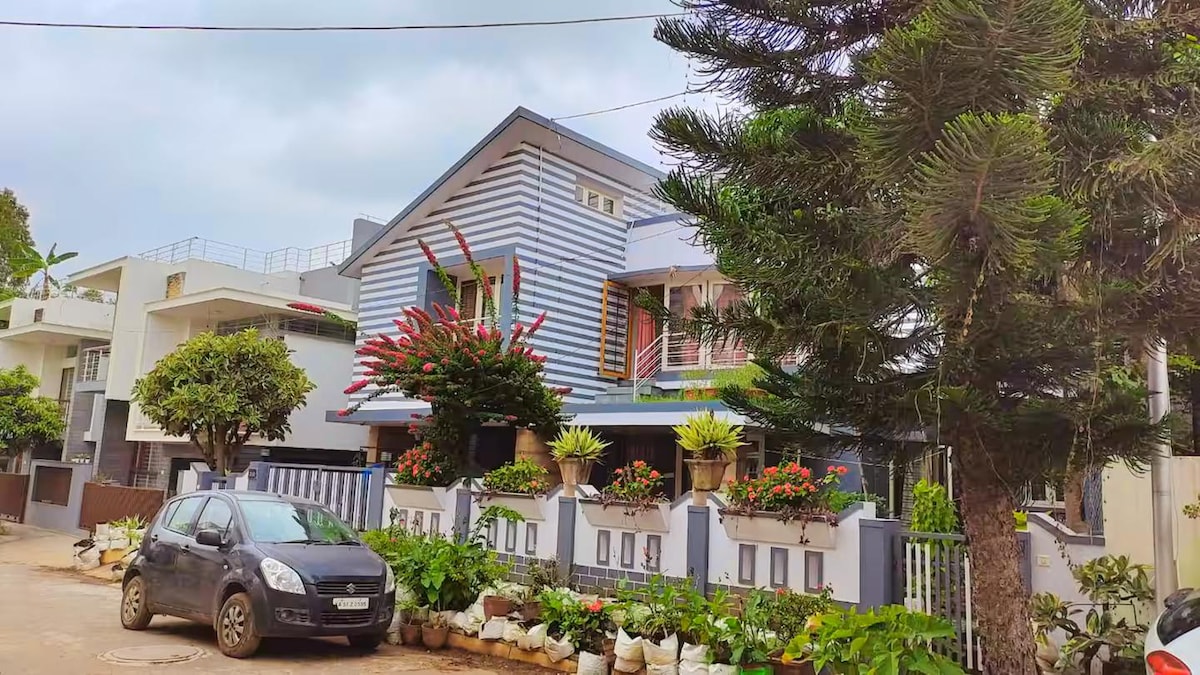 Nature Themed Villa Smart TV's 2 min drive Oia & Big Brewsky 6 min drive Bhartiya Mall of Bangalore 15 min to Manyata tech park 20 min drive to Bangalore airport This is a duplex Listing of 3 BHK, with ground and first floor. Please Note: At the second floor we have a separate 2 BHK which is a different listing. No guests allowed No parties Allowed No Loud Music GATED Residential Layout Pricing is as per guest so kindly select total guest while booking.
