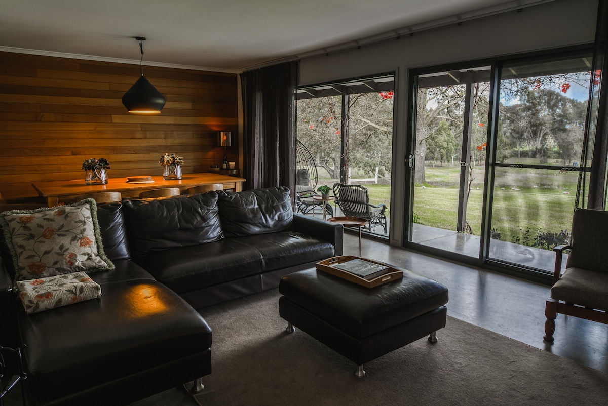 Leave the hustle and bustle of city life behind. This beautiful, spacious 1 bedroom retreat is perfect for couples and has everything you need to enjoy a stay in this beautiful region. Located on 110 acres of rolling hills just over an hour from Melbourne, it's the perfect place to relax and experience some peace and tranquility. Dale View is well hidden from the road, as you sweep up the driveway you will see kangaroos, birds and gum trees as the property unfolds in front of you.