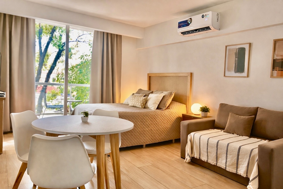 Studio de 40mt2 se encuentra en un prestigioso edificio de lujo, donde el diseño moderno y la sofisticación se combinan para ofrecer una experiencia única. Con amplios espacios, el apartamento cuenta con todas las comodidades necesarias para una estadía de confort y estilo. Este apartamento es perfecto para quienes desean disfrutar de un entorno exclusivo, con la mejor calidad en cada detalle, para vivir la experiencia de un alojamiento de lujo en la ciudad.