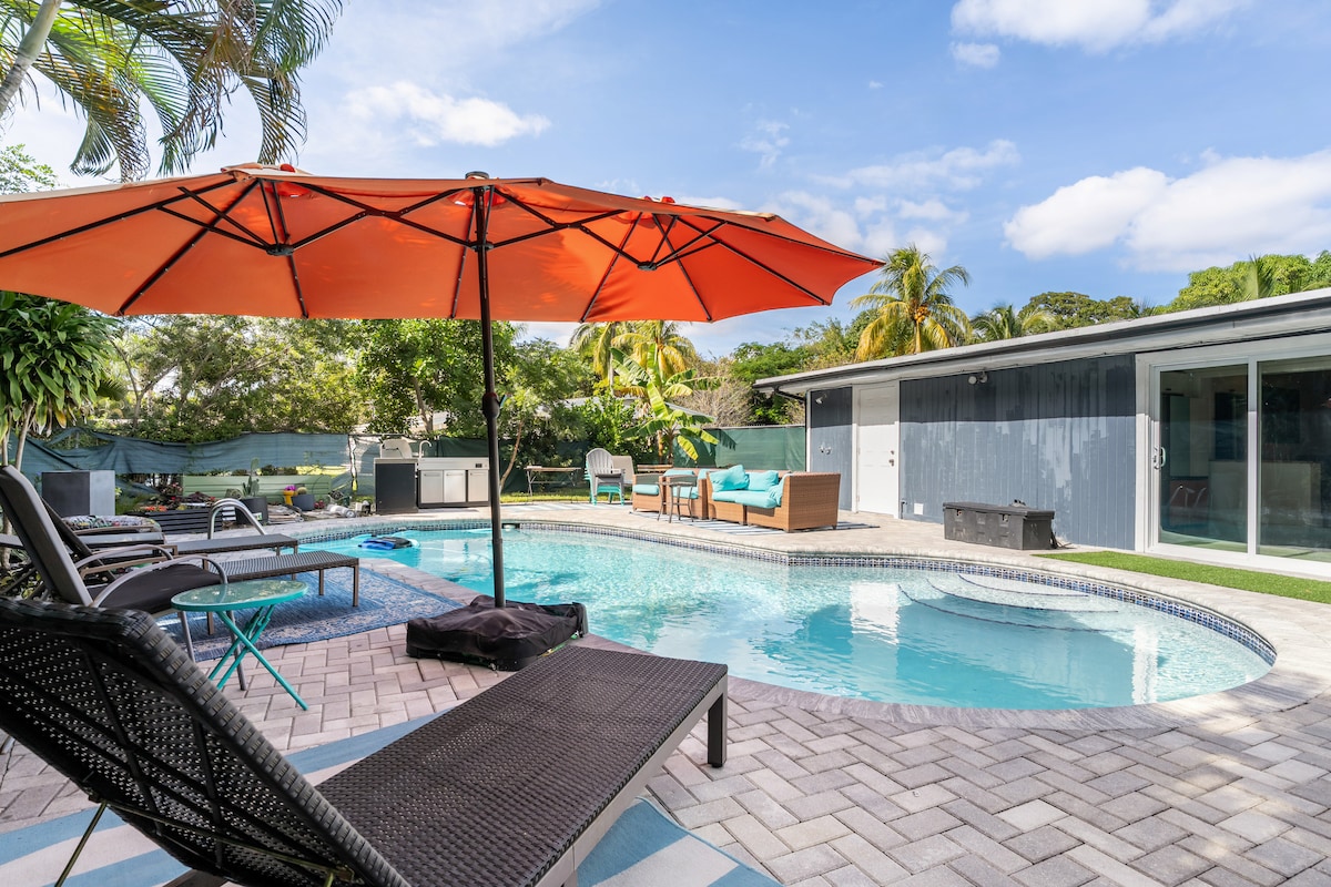 ¡Escápate a este refugio tropical de Wilton Manors! Disfruta de una piscina climatizada, un patio vallado privado e interiores elegantes a solo unos pasos de los vibrantes restaurantes, tiendas y vida nocturna de Wilton Drive. A solo 3 millas de las playas de Fort Lauderdale y a minutos de Las Olas Boulevard. Perfecto para parejas, amigos o familias pequeñas que buscan relajación y diversión en el corazón del sur de Florida.