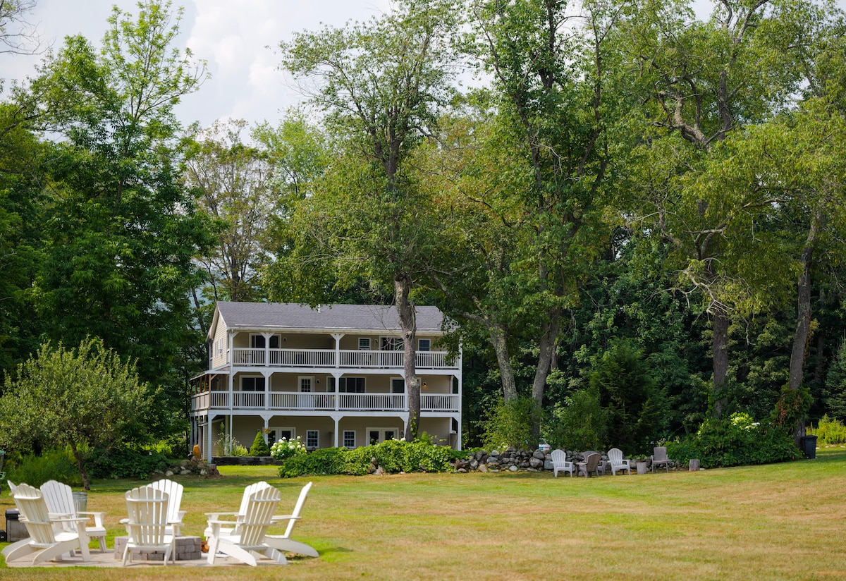 S'mores junto al fuego, los más pequeños en la piscina y una cocina totalmente equipada o un restaurante en las instalaciones a tu disposición cuando lo necesites: así es la vida familiar de primer nivel en On The River Inn. A pocos minutos del centro de Woodstock, nuestro amplio departamento en planta baja cuenta con una cama tamaño king, una cama completa, asientos compartidos al aire libre y acceso directo a 6 hectáreas de jardines y al río. Desayuno diario, galletas por la tarde, sala de juegos, biblioteca y sala de juegos para niños pequeños, gimnasio, piscina y acceso a la sauna, todo incluido.