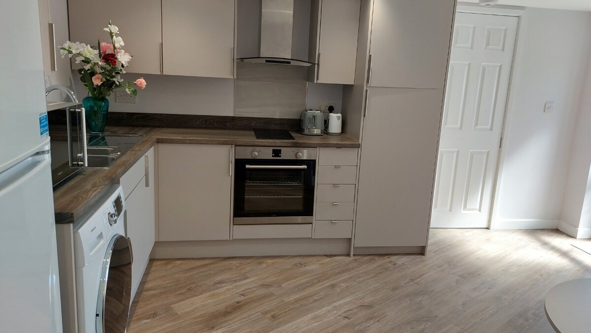 A Self-contained fully furnished 1st floor 1 Bed flat attached to main house which has its own private entrance. It’s situated in a quiet residential cul-de-sac within easy access to the A130 and A12. 15 minutes from Broomfield hospital. Nearby is the park and ride to Chelmsford town and mainline station. The Kitchen/Lounge area is fitted with an Oven, hob, fridge, freezer, washer/dryer and dishwasher. Includes Microwave, kettle, toaster and is equipped with utensils, dishes, saucepans etc.