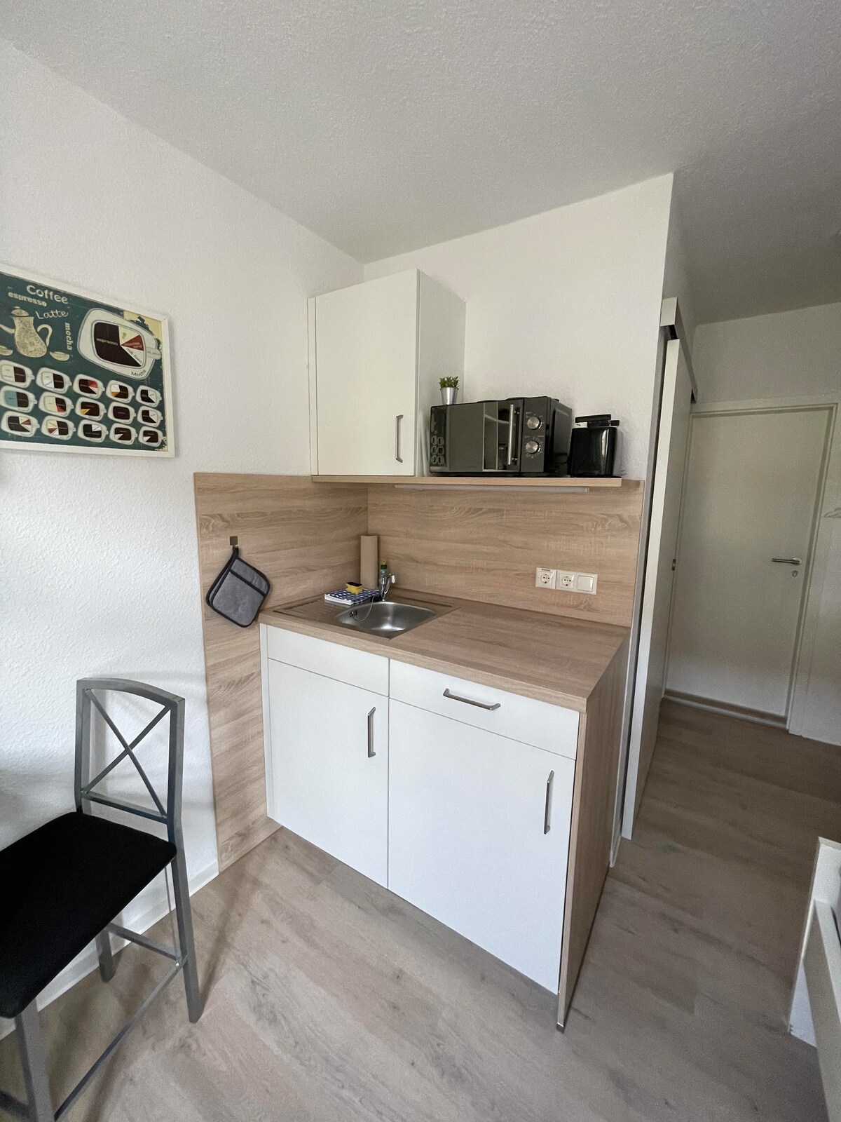 El departamento se ubica en una casa de entramado de madera de 300 años de antigüedad. Es muy espacioso y absolutamente tranquilo a pesar de su proximidad al centro. La renovación se realizó desde un punto de vista ecológico. Las viejas paredes de arcilla crean un clima interior natural, pero requieren reglas especiales de ventilación que el inquilino debe cumplir. De octubre a abril, la ventilación solo puede llevarse a cabo de acuerdo con el principio de ventilación (unos 10 minutos de ventilación cruzada por la mañana y por la noche). No hay televisión.