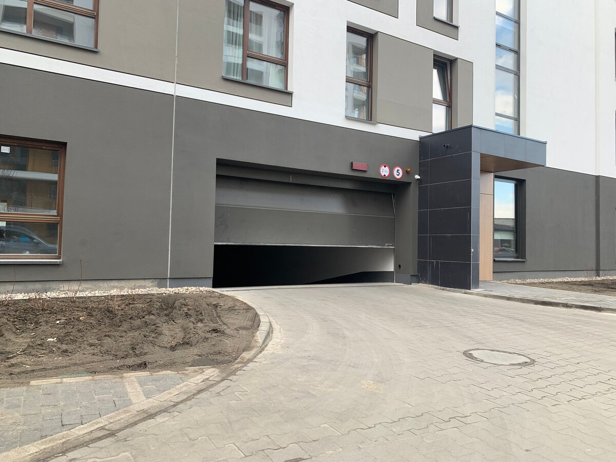 Very nice apartment. There is a kitchen with a living room, bedroom, bathroom and a balkony. Behind the building there's a small forest as well as a nice park. Around 200 m from the appartment there's a shopping mall and a cinema. For guest use there`s a undergrung car park with dedicated place. In the kitchen for comfort f guest there are basic kitchen staff like coffee, tea, sugar, salt, oil, spices etc... Night silence applies between 22.00-06.00 so it`s not adequate for parties.