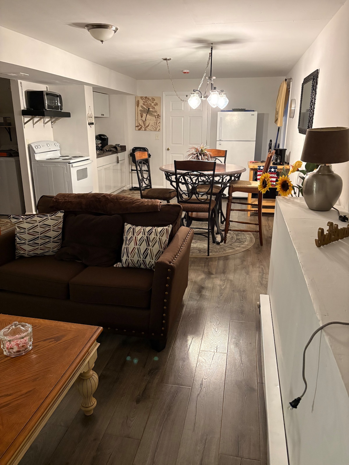 Enjoy the comfort and tranquility of this modern apt. A lovely space to relax after a busy day. This clean and bright apt offers a tranquil residential vibe alongside quick, easy access to the Torrington downtown areas, restaurants, stores and bars. It features an open-concept layout, a neutral color scheme, wood surfaces, tasteful furnishings and decor. Designed comfortably for your stay offering WiFi, Netflix, laundry, queen bed, well equipped kitchen, and clean fresh white bed sheets.