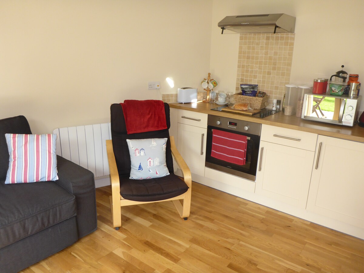 The Tack Room: elegante anexo independiente con sala de estar y cocina de planta abierta, baño con ducha con dormitorio separado y aparcamiento seguro dentro de una entrada cerrada. Situado a 6 millas al este de Chichester y Goodwood, fácil acceso a ambos; cerca de Arundel, el Parque Nacional de South Downs y perfectamente situado para explorar la hermosa campiña y las playas de la costa sur. El hipódromo de Fontwell se encuentra a poca distancia a pie.