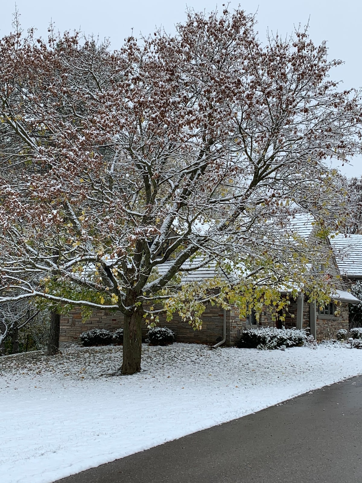 Casa central de ladrillo rojo: sendero, LRT y fogata.