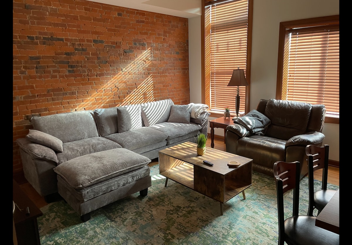 This urban-styled studio is located in the heart of historic downtown Wooster. You can walk to some of the most popular local restaurants, specialty boutiques, coffee shops, and more. Featuring the original exposed brick, this unique space can accommodate 1-2 guests with one king bed, living area, and fully stocked kitchen. Explore the rooftop access where you can sit and enjoy the scenic views of downtown.