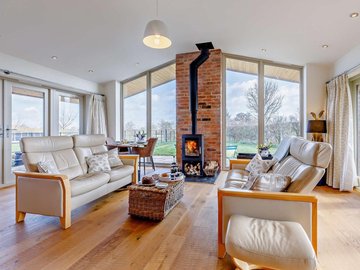 Despierta con vistas panorámicas a las colinas de Flintshire en este refugio de lujo y ecológico, cuidadosamente diseñado para escapadas románticas y escapadas tranquilas. Sumérgete en una cama tamaño king debajo de un techo abovedado, con ropa de cama de calidad hotelera, acabados a medida y detalles refinados en todas partes. A tu llegada, disfruta de obsequios de cortesía, leche fresca y obsequios para perros para nuestros huéspedes peludos. Fácil acceso a Chester (20 minutos) Wrexham (20 minutos) Mold (10 minutos) Snowdonia y más allá.
