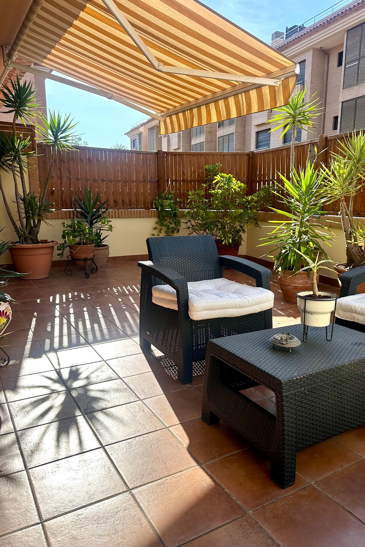 Un apartamento/adosado a segunda línea del mar, 3-5 mins andando. Está muy bien ubicado teniendo el paseo del mediterraneo al lado junto con chiringuitos y restaurantes. La playa de rocas en el paseo es accesible. El canal Nou Fontana está a unos pasos y andando por el canal a unos 8 minutos está La playa El Arenal y sus zonas de comercio y restauración. Dispone de amplio garaje privado. La zona común es amplia y cómoda. El apto comunica directamente con la piscina y ademas no da a poniente.