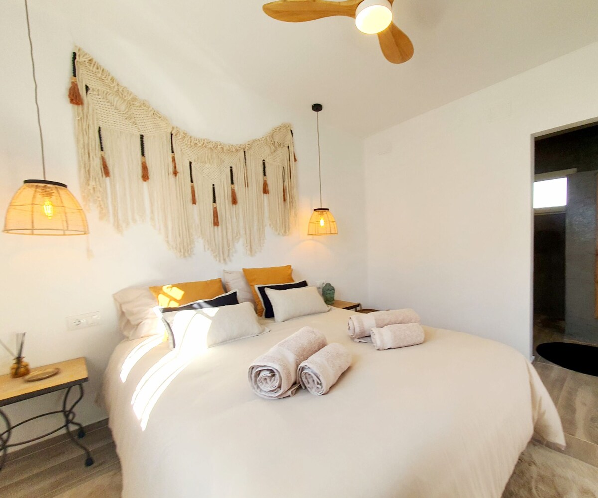A charming old townhouse, fully renovated to the highest standard, with stunning sea and mountain views from the 25 sqm terrace. The house is located just behind the main street, Calle Miguel, in the picturesque Old Town, just a stone's throw from the beautiful church at the square. The house is fully equipped with all the kitchen essentials needed to prepare breakfast, lunch, and dinner. On the terrace, you'll find a dining table with chairs, sun loungers, and a lounge sofa for relaxing moments