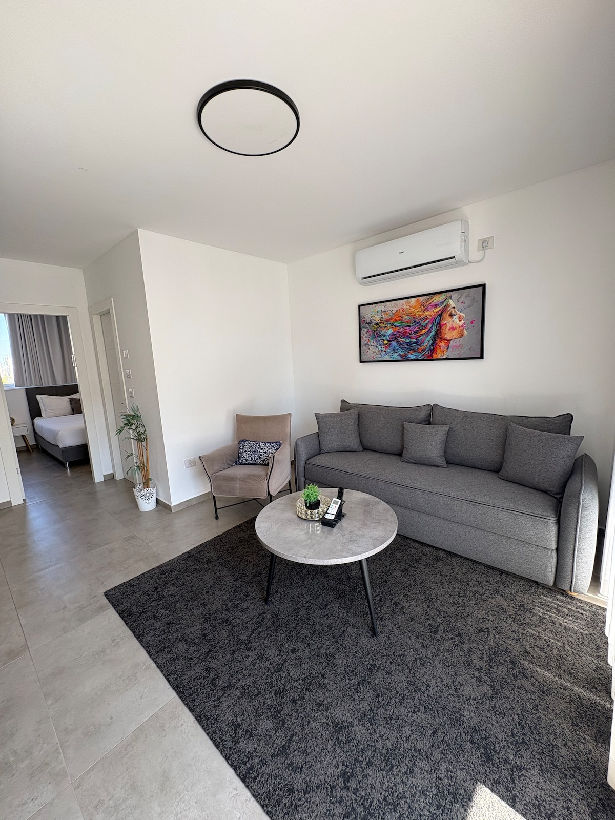 Disfruta de una experiencia elegante en este lugar. Hermoso y tranquilo departamento boutique en la zona oeste de Rishon LeZion con sala de estar, dormitorio, cocina totalmente equipada, balcón y ascensor. Estaremos encantados de hospedarte. En cuanto al tamaño del apartamento, no hay ningún problema, pero puedes bajar un piso por debajo de nuestro tamaño, compartido en todo momento, o a una escalera que estará tranquila días.