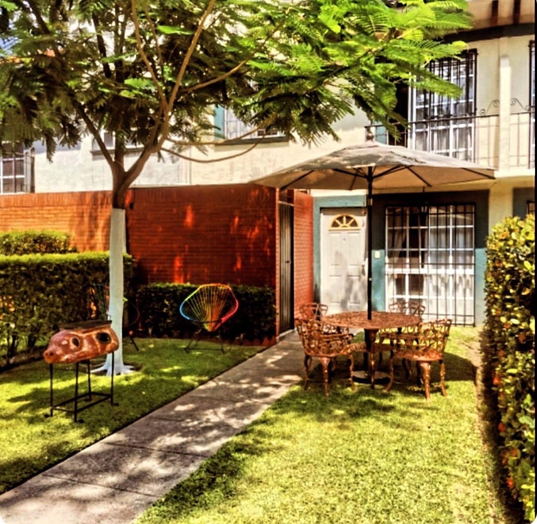 Hospédate en una casa completa en fraccionamiento, contamos con terraza y jardin privado, además de alberca y amplios jardines compartidos. Disfruta de un clima excepcional y ambiente 100% familiar. Nos encontramos dentro de un fraccionamiento de ambiente familiar, por favor revisa detenidamente el reglamento para que escojas el alojamiento ideal para tus planes. *Contamos con Wifi pero ha habido problemas de conexión en la zona por lo que no podemos garantizar la disponibilidad del servicio.