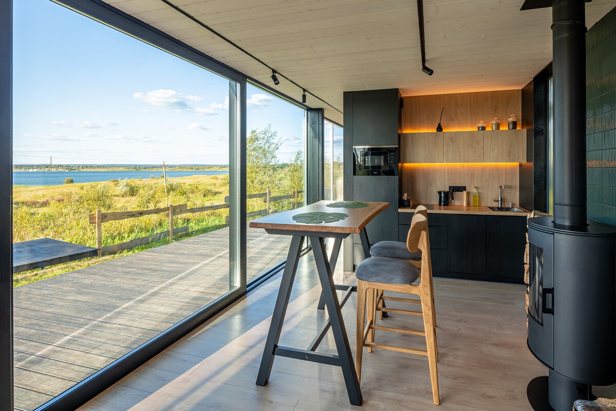 La unidad con la naturaleza se siente mejor en la cabaña junto al bosque. Hay conejitos corriendo, docenas de pájaros volando, ardillas saltando, arbustos de arándanos y moras en flor. Y dentro de la casa, todo lo que necesitas para unas vacaciones de calidad: ventanas panorámicas, una gran cama con almohadas de cáñamo y una manta, una estufa con leña, una cómoda cocina, una ducha de efecto lluvia con una vista fantástica de la puesta de sol. Una terraza con una zona de relajación, un tazón de fuego y una taza (tina) también están a tu servicio en cualquier momento.