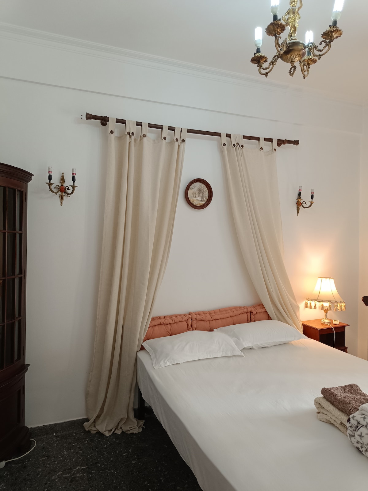 Un ático de estilo real verdaderamente único a solo 8 minutos del aeropuerto de Atenas. Al igual que un museo privado, cuenta con antigüedades, camas extragrandes de 200×220, una gran terraza privada y acceso a la azotea para disfrutar de vistas panorámicas y avistamiento de aviones. Ideal para familias, con mucho espacio y carácter que no encontrarás en ningún otro lugar de la zona. Las puertas de vidrio inundan el espacio con luz natural y enmarcan el cielo abierto, una estancia única que combina el encanto clásico con las raras vistas de la ciudad.