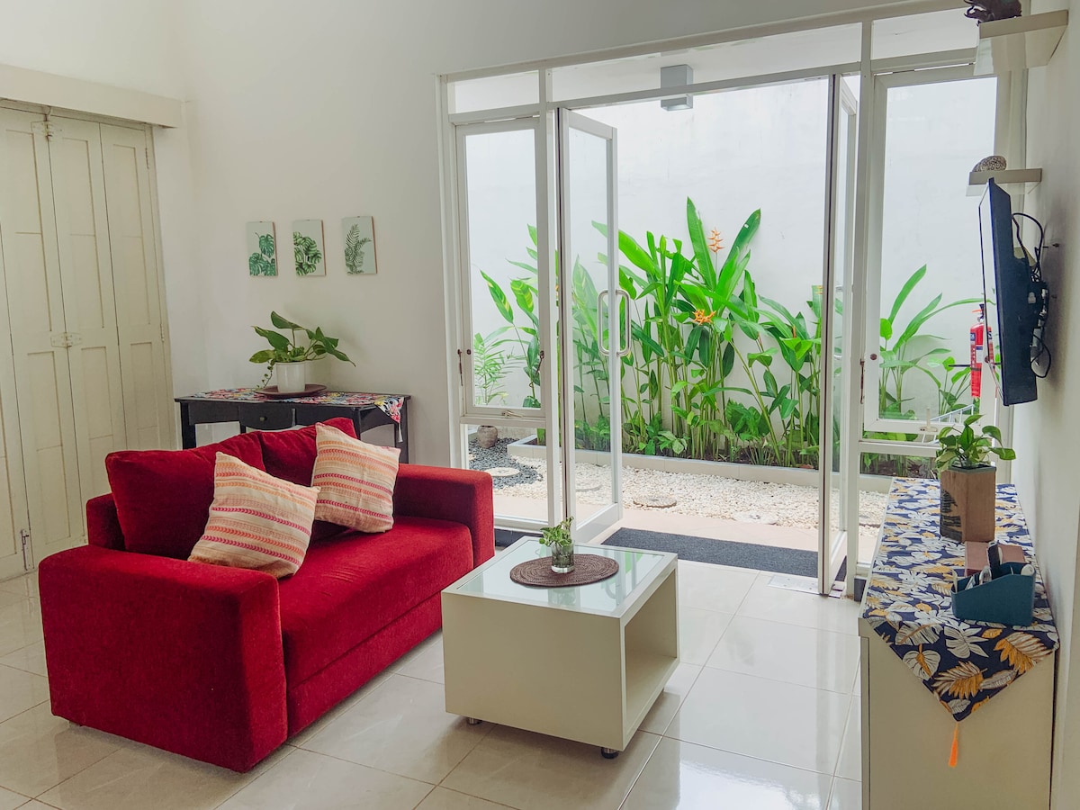 ¡Alójate en una acogedora casa adosada retromoderna a solo 1 minuto de Malioboro! Perfecto para familias o amigos, cada dormitorio cuenta con un televisor inteligente, baño privado y artículos de ducha completos para mayor comodidad. Disfruta de una zona de cocina totalmente equipada con estufa y de un altavoz Bluetooth para tus momentos de relajación. También ofrecemos alquiler de motos y coches con conductor para facilitar las excursiones por la ciudad o las excursiones de un día. Simplemente avísanos con antelación para que podamos programar uno para ti. Descubre más en IG: @rumahtangga.jogja ✨