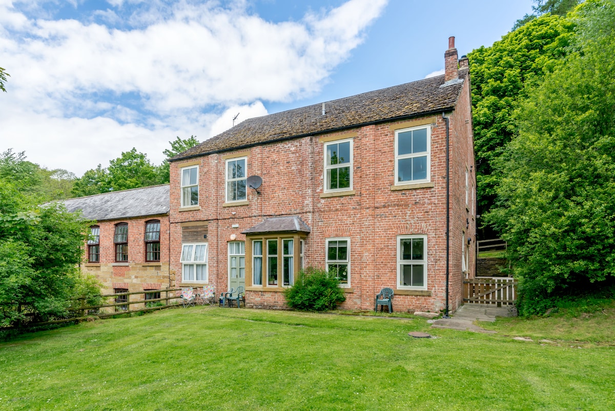 Alójate en un anexo de 1777 bellamente restaurado con 9 acres de campo para explorar. Acogedor dormitorio con vigas de madera, puertas francesas a prados de flores silvestres y una puerta de luna que conduce a colinas onduladas. Relájate en el jacuzzi con vistas panorámicas (¡observación de vida silvestre incluida!), haz un picnic bajo nuestro roble de 100 años o disfruta de la peculiar cocina del bar de autoservicio. Cerca de Manchester, Leeds, Halifax y encantadores pueblos de Yorkshire, perfecto para una escapada tranquila con un toque de magia (jacuzzi £ 30 por noche)