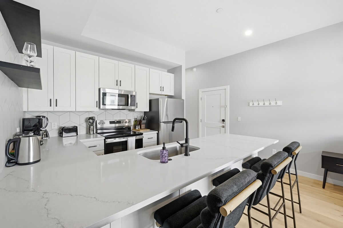 Disfruta de una estancia en esta nueva construcción en The Madison on Penn, un edificio boutique de 8 unidades que está situado en el centro de Bloomfield. A poca distancia a pie del UPMC Children's Hospital y West Penn Hospital, este moderno edificio es ideal tanto para estancias cortas como prolongadas. ★1 cama tamaño king (dormitorio) ★1 sofá cama tamaño queen (sala de estar) + 1 cuna Pack n Play ★Estacionamiento gratuito fuera de la calle ★ Gimnasio compartido con sauna y equipo de ejercicio ★ Lavadora/secadora gratis en el alojamiento ★ Escritorio con wifi rápido ★ Asistencia al huésped 24/7