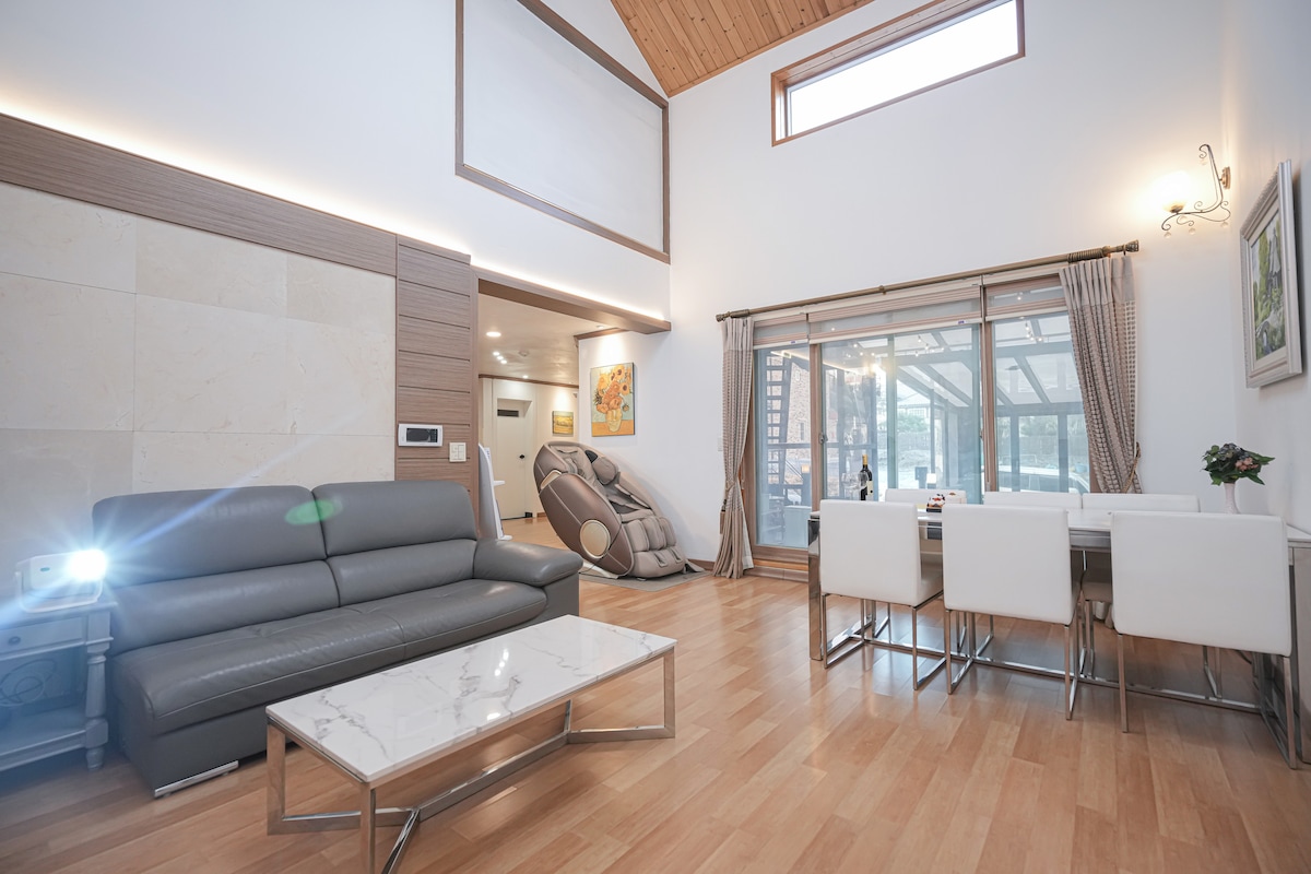 Amplio apartamento de tres habitaciones en Wolpyeong-dong con un ambiente coreano Es una excelente casa para que hasta 10 personas se alojen juntas. 🛏 Dormitorios - 3 dormitorios (1 king/3 queen) Colchón tamaño queen plegable - Marco de cama/mesa auxiliar de madera. - Calefacción y refrigeración disponibles en cada habitación. 🍽 Comedor - Mesas y sillas para grupos - Muebles tradicionales e interiores de madera. - 2 televisores [65 pulgadas 55 pulgadas]/Wi-Fi 🍳 Cocina - Estufa de gas/microondas/arrocera - Olla / sartén / plato / taza / utensilios de cocina / freidora de aire 🚿 Baño - 2 bañosa. - Toallas / 3 secadores de pelo / papel higiénico - Champú / acondicionador / gel de baño / jabón de manos / pasta de dientes y cepillo de dientes 🧺 Zona DE lavandería - Lavadora/secadora de gran capacidad. 🌿 Azotea - Instalación de proyector de haz y carpa completada/2 calentadores grandes instalados, cálidos incluso en invierno - Comida de Beam, fiesta disponible (restringida después de las 10:00 p. m.) 🧼 Limpieza e higiene - Limpieza antes y después de la estancia. - Lavar y reemplazar la ropa de cama. En un ambiente coreano Si estás buscando un alojamiento cómodo para muchas personas Te recomendamos Gini House.