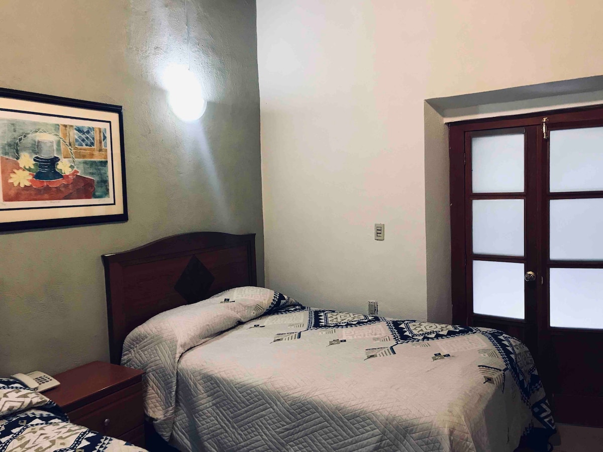 Habitación Sencilla para 2 persnasy con baño privado Centrica a solo cuadra y media de la Catedral, en mero centro histórico y al pie del cerro de La Bufa, excepcionalmente ubicada hay una pequeña tienda a una cuadra, cafés, resntaurantes y lugares agradables para Cenar