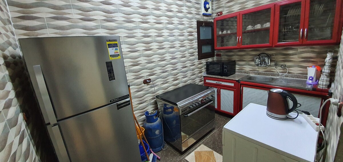 Disfruta de una estancia cómoda en un apartamento amueblado completamente nuevo (primera residencia) ubicado en una zona tranquila y exclusiva cerca de la mezquita Abu Ahmed. Características del departamento: 3 dormitorios completamente amueblados Gran recepción (3 áreas) Dos baños modernos Muebles nuevos, elegantes y cómodos Aire acondicionado en todas las habitaciones y recepción Segundo piso con ascensor moderno Iluminación y diseño de interiores elegantes Servicios del edificio: Seguridad 24/7 Cámaras CCTV ✔ Listo para mudarse