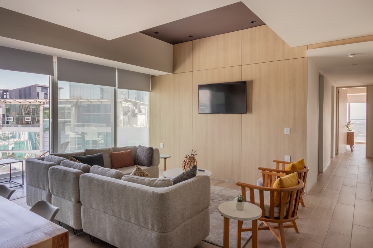 En Lobby33, Puerta de Hierro, combina lujo y comodidad en un 2BR para 6 con terraza privada y vistas a Andares. Cocina equipada, sala amplia para compartir, camas cómodas para un descanso perfecto y WiFi estable para trabajar. Disfruta alberca, jacuzzi, estacionamiento y seguridad 24/7. A pasos de Andares, Landmark y La Perla: compras, gastronomía y entretenimiento sin igual. Todo en un solo lugar, pensado para que tu estancia sea inolvidable.