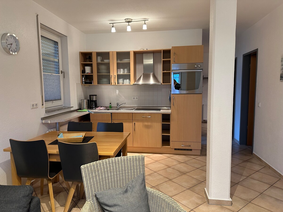 ¡Te damos la bienvenida a nuestro departamento amueblado con cariño! En 58 m², puedes esperar mucho espacio para sentirte bien, ideal para un máximo de 4 personas. Dos dormitorios separados ofrecen noches relajantes, mientras que la amplia cocina te invita a cocinar, reír y disfrutar juntos. Comienza el día con el desayuno en el patio soleado y déjate encantar por el ambiente relajado. Tu auto se puede estacionar cómodamente y de forma gratuita directamente en el lugar, para que tus vacaciones comiencen sin estrés.