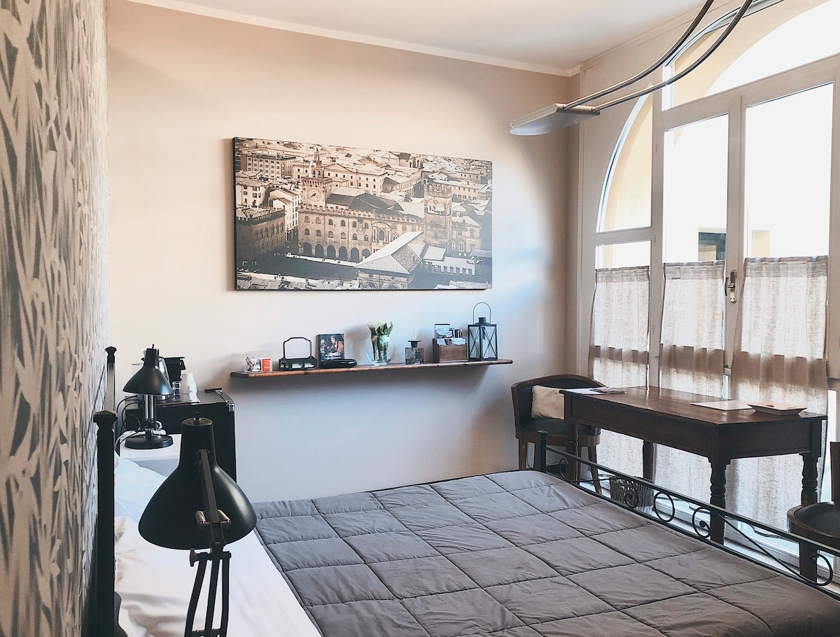 Apartamento en la primera planta con entrada independiente en 2 niveles, reformado con acabados muy finos, parqué en los suelos, vigas a la vista y muebles nuevos. Está equipado con todas las comodidades y está muy cerca de la céntrica Piazza Maggiore. En la planta baja hay una sala de estar con una cocina totalmente equipada, un cómodo sofá cama y un televisor. Arriba hay un cómodo dormitorio, un baño con ventana y una gran ducha cómoda. Se proporcionan sábanas y toallas. Conexión wifi disponible. Aire acondicionado.