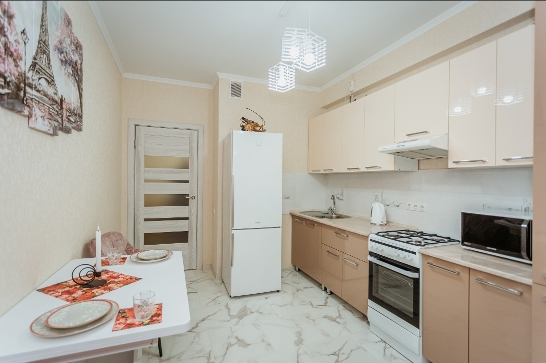 Este apartamento es muy acogedor y cómodo. Además, hay un lugar de trabajo cómodo y una cocina hogareña bien equipada disponibles. Tiene muchas instalaciones cerca: supermercados, restaurantes, gimnasio. Buena ubicación a igual distancia del centro de la ciudad, el aeropuerto y la estación de tren. A 15 minutos del aeropuerto en taxi.