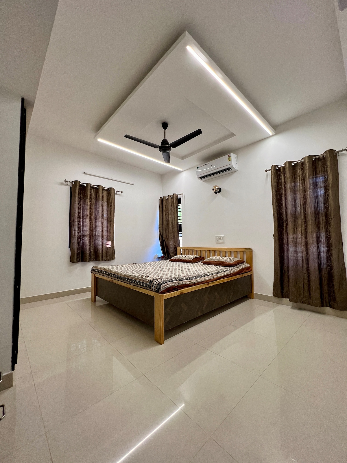 Lujosa villa de 3 dormitorios – Shivani Homestay Es una villa privada totalmente amueblada con 3 dormitorios, sala de estar y cocina. Todos los dormitorios tienen aire acondicionado. Todas las habitaciones tienen un moderno baño adjunto con ducha, geiser, lavabo, espejo, jabón de manos, gel de ducha, champú, acondicionador y WC. La sala de estar es grande y tiene TV Android 4K de 50 pulgadas y wifi gratuito. La cocina incluye nevera, hervidor y armarios. Toda la zona de la casa está cubierta con conexión wifi gratuita. Diviértete con toda la familia en este alojamiento con estilo.